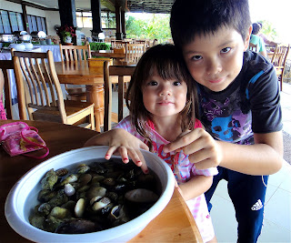 Also on “Is life a recipe?” I hope you red re our fosskicking & grubbing experience on the beach – picking up cockles and Gong Gong from the beach, and eating them a few hours later freshly prepared by the hotel chef – amazing! Here are the girls at the start of the hunting for food session.