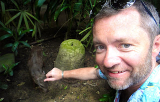 I got absolutely blown away in here. There were these tiny little deer called literally Mouse Deer that were the most gorgeous, timid little things you have ever seen. Usual me, I’m up to my neck in foliage trying to get good photos and spotted this little female one at the back of the cage. I did all the usual things of make yourself smaller, be quiet etc etc and bugger me this gorgeous little cutey comes over and let’s us start petting her. She liked us so much she even started to follow us when we were leaving, but people behind kind of stopped that happening. How gorgeous is this little thing. This MADE MY DAY, as I think you’ll see from my expression – so impressed to that little Amy got well in to this – it runs in the family!