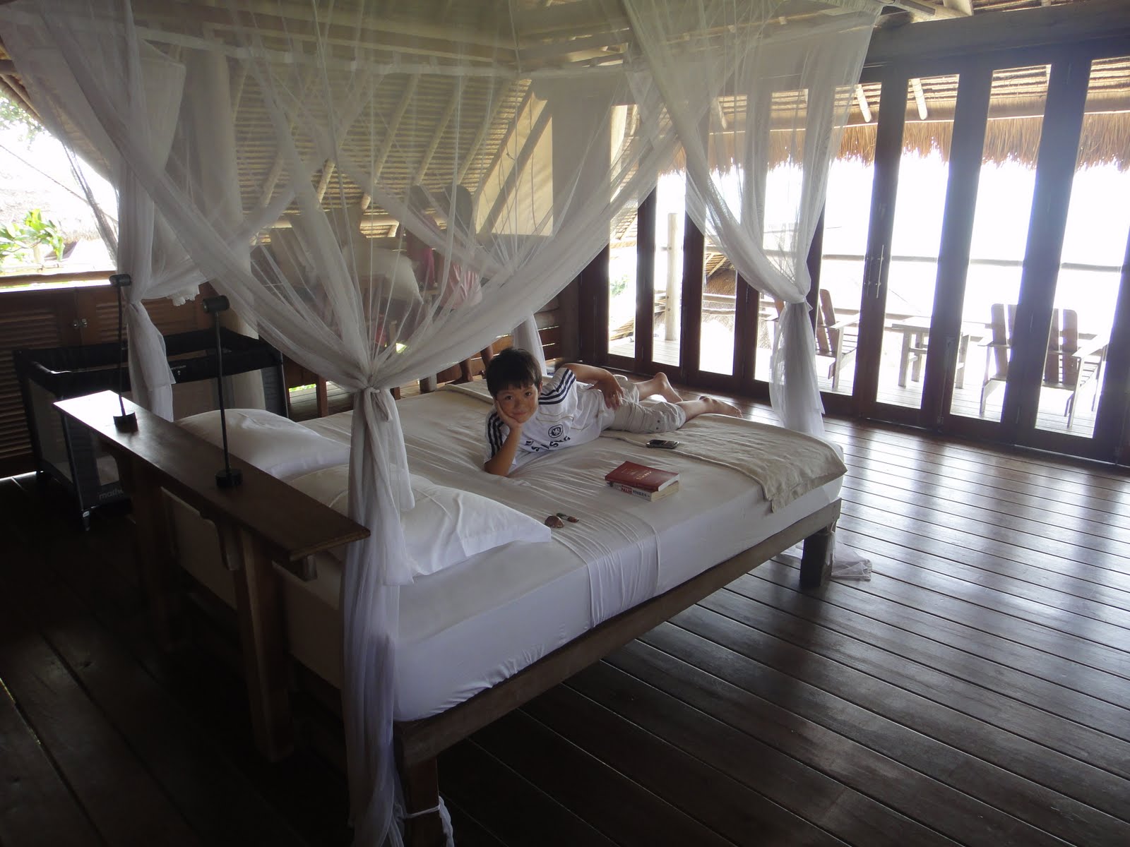 Woo Hoo sexy, Ollie showing off HIS room. Yep this was all his. When booking and there being me the kids and Mary I though best get a two bed villa thing. Well that actually comes with 7 beds ha ha! HUGE.