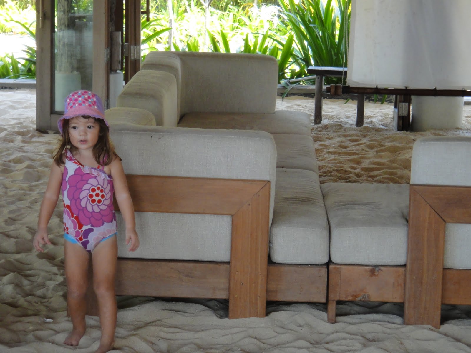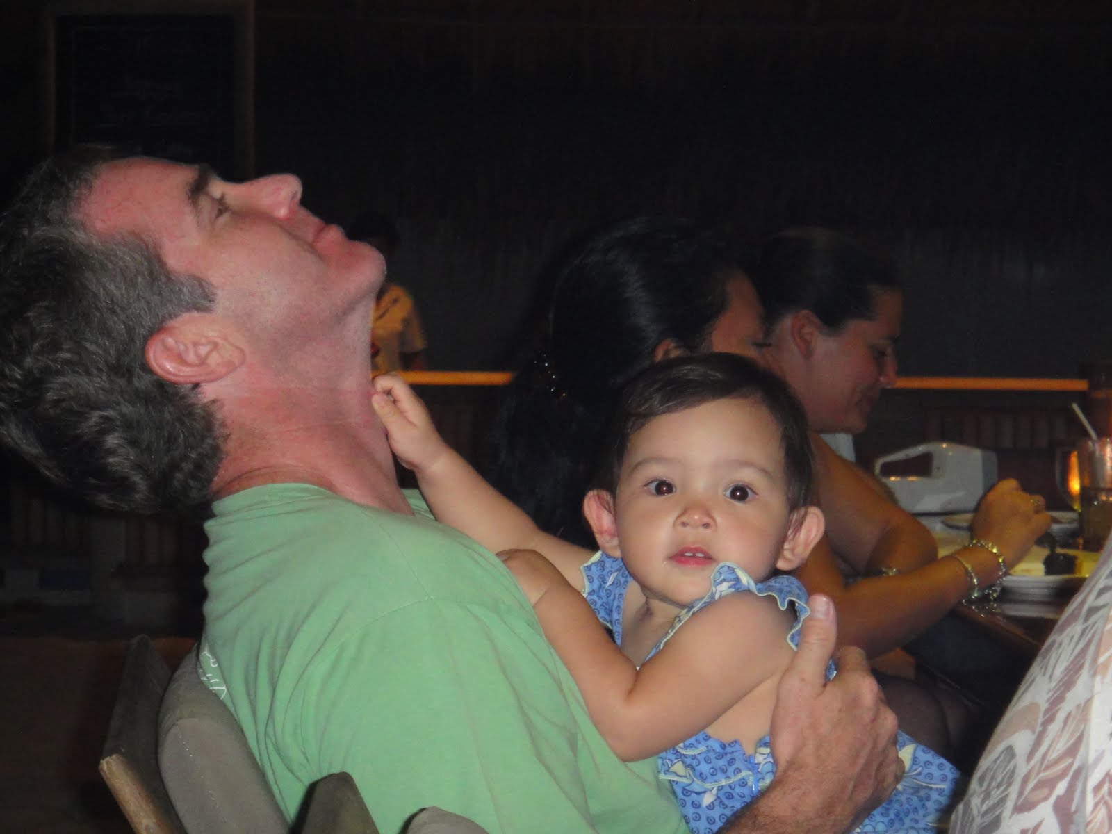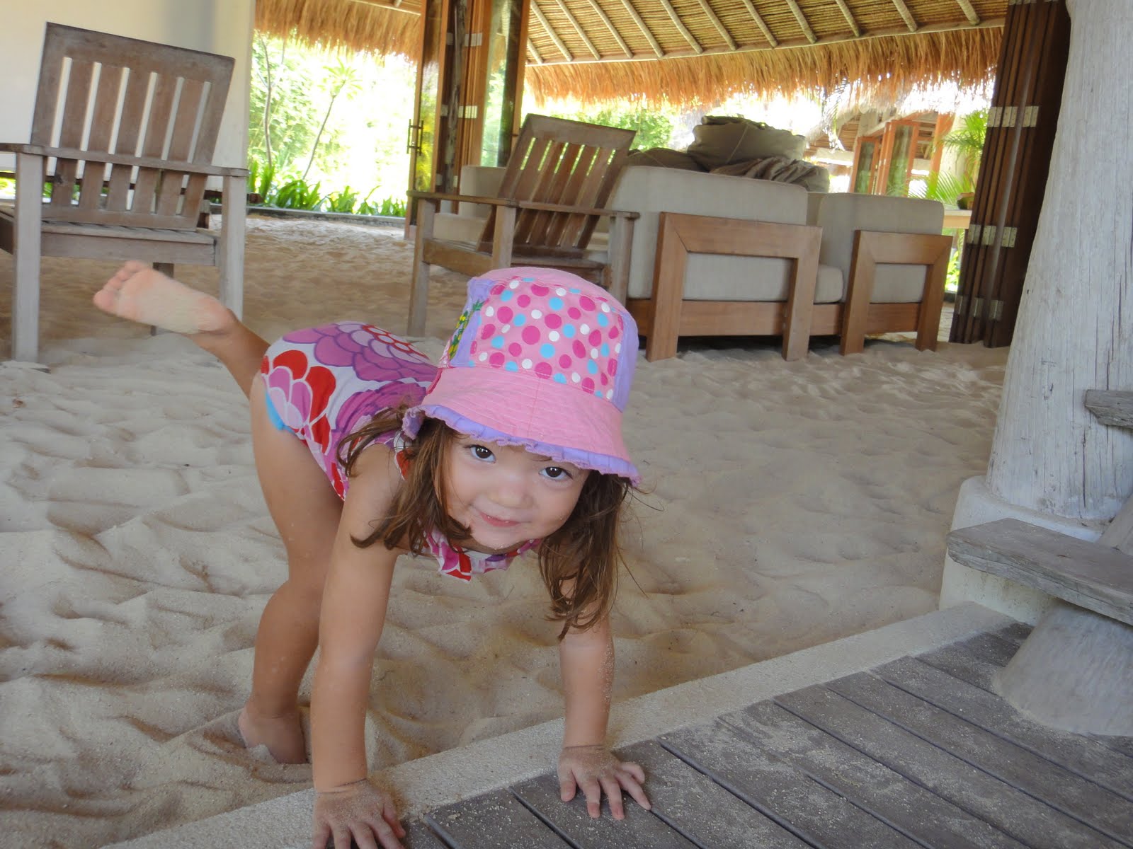 Is Amy playing on the floor of the restaurant, yep you heard me. You sat at dinner barefoot, scrunching toes in white sand, munching on yummy food.