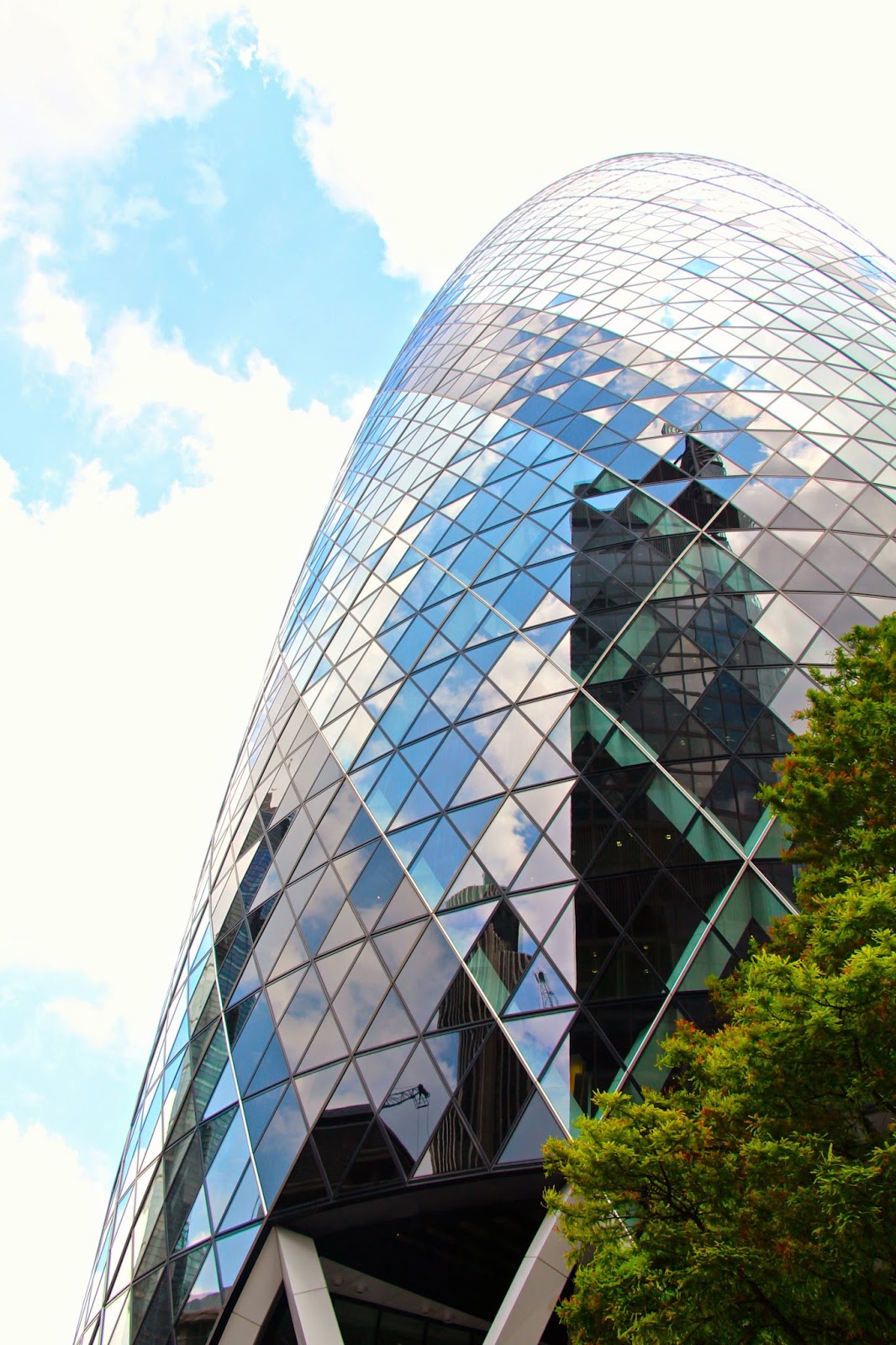 The Gherkin, a real funky building that is shaped like a gherkin.