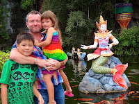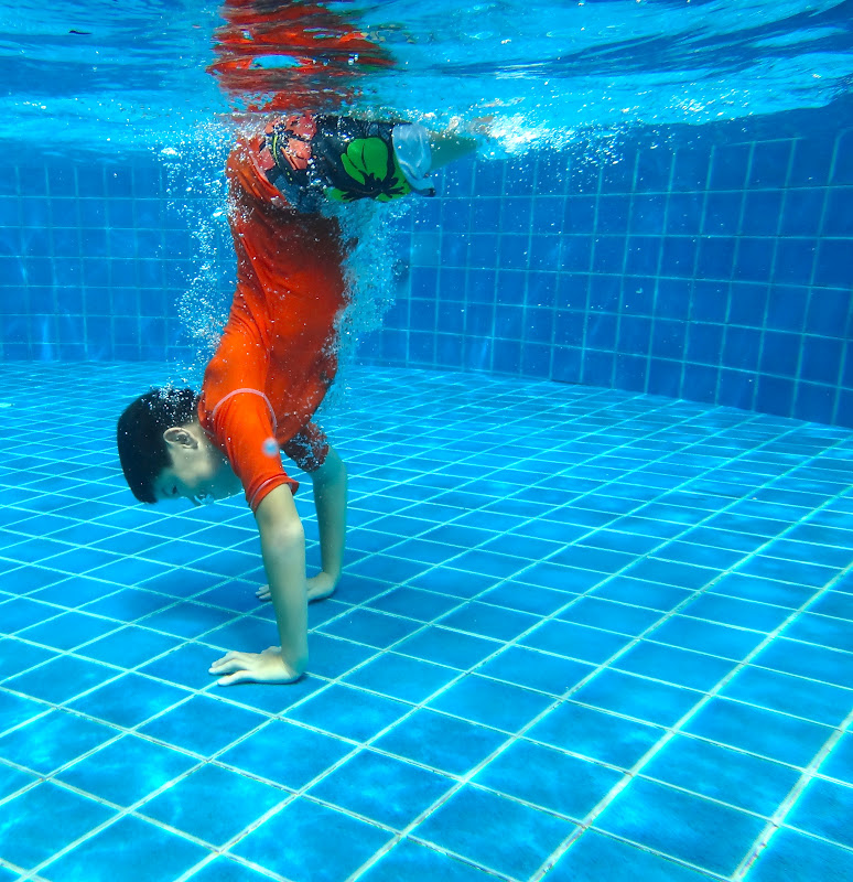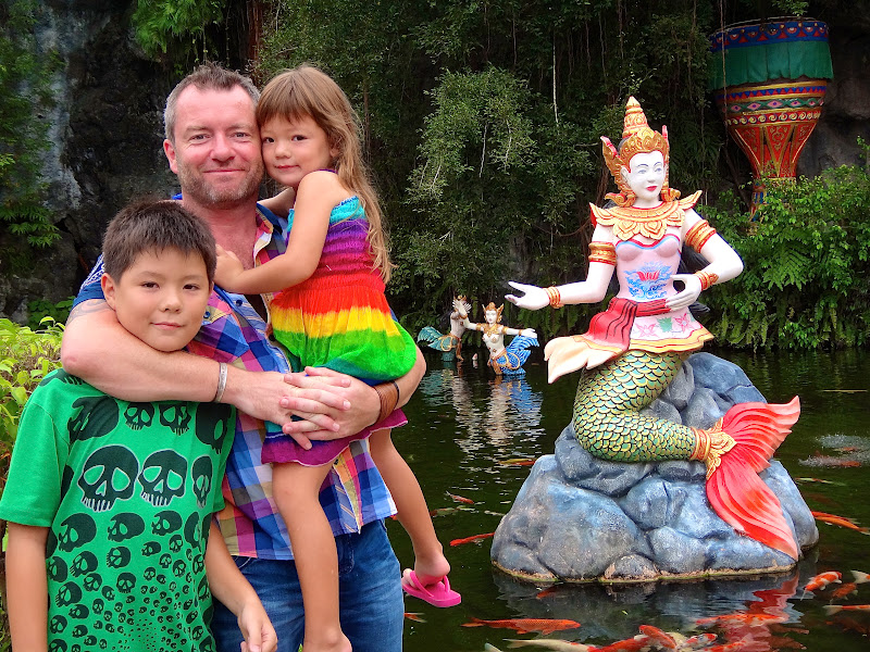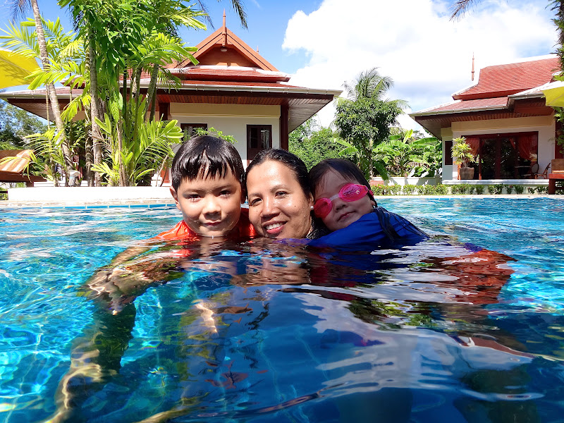 A very sad time as we really did enjoy this trip. Stepping in to a boiling hot, luke warm like bath water, swimming pool, chatting, playing and laughing, but sad underneath that that was that, and in 3 hours we’re gone back to Singapore – not that that is a bad thing, but that we were saying goodbye to Thailand. Still lovely photos (maybe not the one of yours truly catching some rays – and allowing gut to cast some much needed shadow for the kids to play under!)
