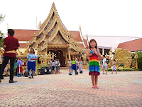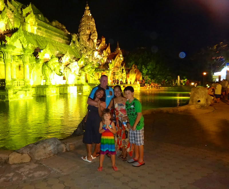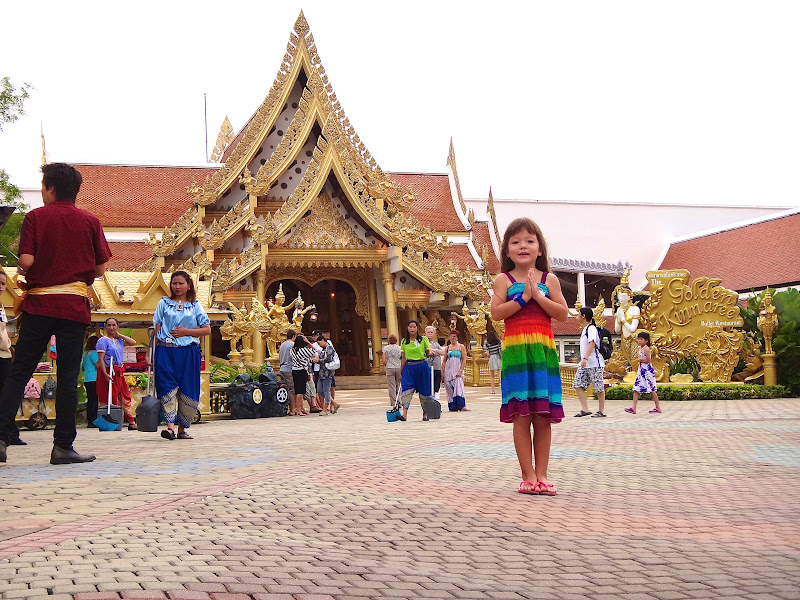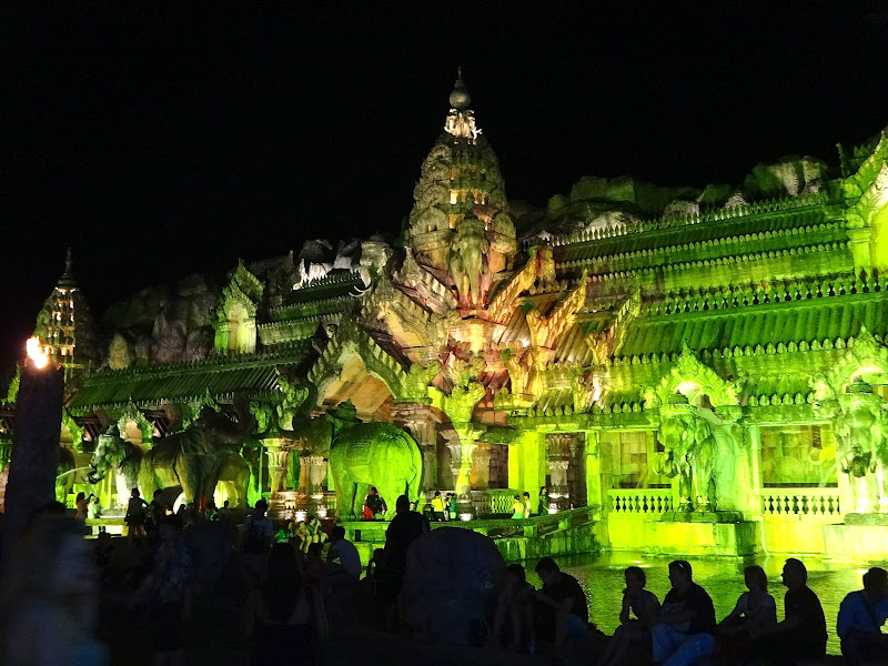 This is on arrival, the “fake” Thai temple, which is actually a facade to a HUGE stage where the show is held. Check out Amy, Sawadeekap Amy.