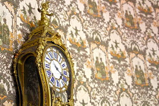 French clock from Paris with what I think is a backdrop of Chinese wall-paper.