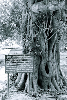 This is the tree they tied huge speaker systems to, then played loud music so people in the nearby city could not hear the screams of the poor, unfortunates being executed here.