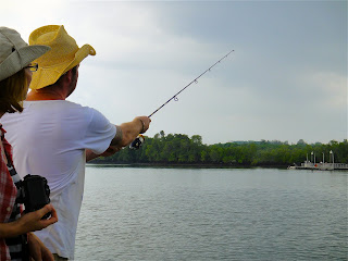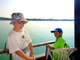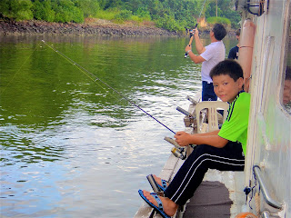 Sad thing was for a while it was girls 5 and boys 0 in terms of fish caught. Here’s one of the girls pulling in a catfish, nasty barbs on it’s back and fins that were cut off.