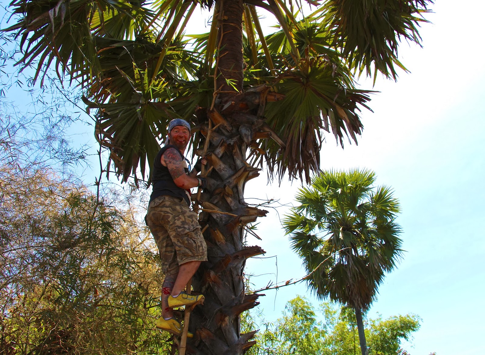 I spotted this bamboo pole fashioned in to ‘ladder’ up the palm tree where the guys run to collect the fruits to then dry in the sun as a herb.
