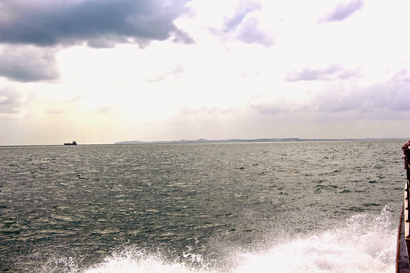 | Facing backwards – we look in to the distance and say a goodbye to Singapore. Baby Jude and Mary were downstairs having a snooze at the time. |