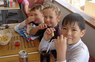 And yes Mum that is Ollie and I prawn fishing, but Mary had to be real quick to take the photo as Ollie “got bored” after about 30 seconds and went next door to Polliwogs with friends of ours kids and Amy of course. That left me and Geoff (prawn fishing virgin) Nicoll to hunt and gather for the family. I think I scored about 8-10 prawns to Geoff’s measly one, ha ha – good effort mate! So the Dad’s were sat fishing for food and having a few beers whilst the ladies and kids enjoyed a ball in Polliwogs, then 2 hours later prawns on BBQ, delicious then to Scruffys for Western fare and a couple of ciders – a lovely afternoon, thanks all!