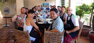 Back to the world famous FCC, to watch the Meekong slip on past, whilst enjoying some of the local beverage they call beer and sampling a few more crickets from the bag. A lovely group shot this one. At the front of the table are the seasoned team members of the Tabitha experience and at the back of the table you’ll see three of our “virgins” for 2012. Great bunch of people, some 1st time in Asia who even tried a cricket or two.