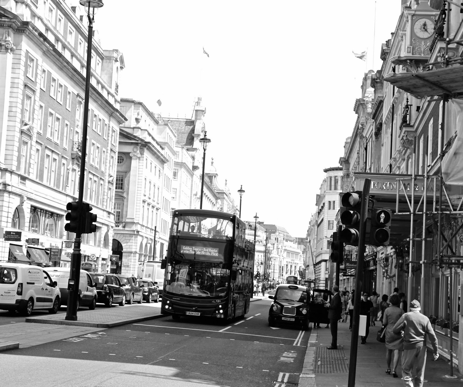 Off now down towards Piccadilly Circus, but 1st we need to stop off at Fortnum & Mason for food stop. Whilst walking there I wanted to take this snap, as on my dining room wall in Singapore I have a black and white poster of exactly this with an old red bus chugging along. Great reminder for me every time I see it of London days, so now I have this photo to blow up too.