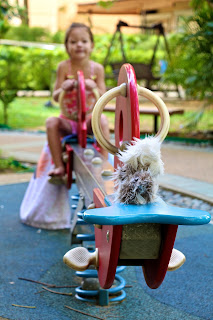 At her school there is a very cute thing going on. Each of the kids gets to learn responsibility by having a play date with Muffin McLay, the class mascot, a very cute little fellow of whom you shall see a great deal in the next phew photos. So over this weekend we had Muffin come stay for an Amy play-date. We kept it simple, no airs or graces, just a ‘normal’ weekend in Singapore. We were honoured to have you Muffin and hope you can come and stay again with us very soon.