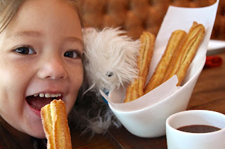Luckily though he saved enough room in his tummy for yummy yummy yummy Churros and Chocolate dipping sauce. We had to wipe his whiskers a lot afterwards.