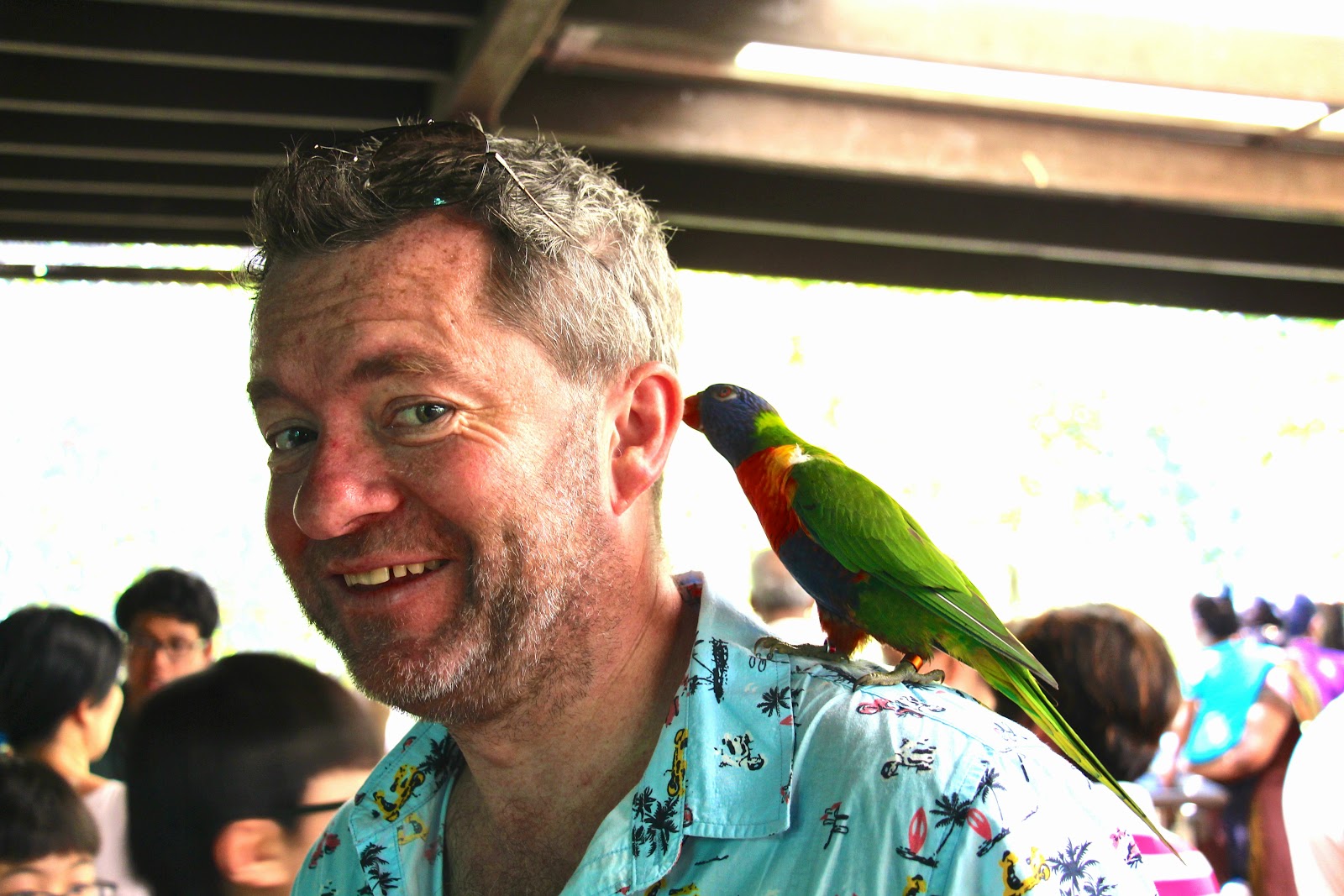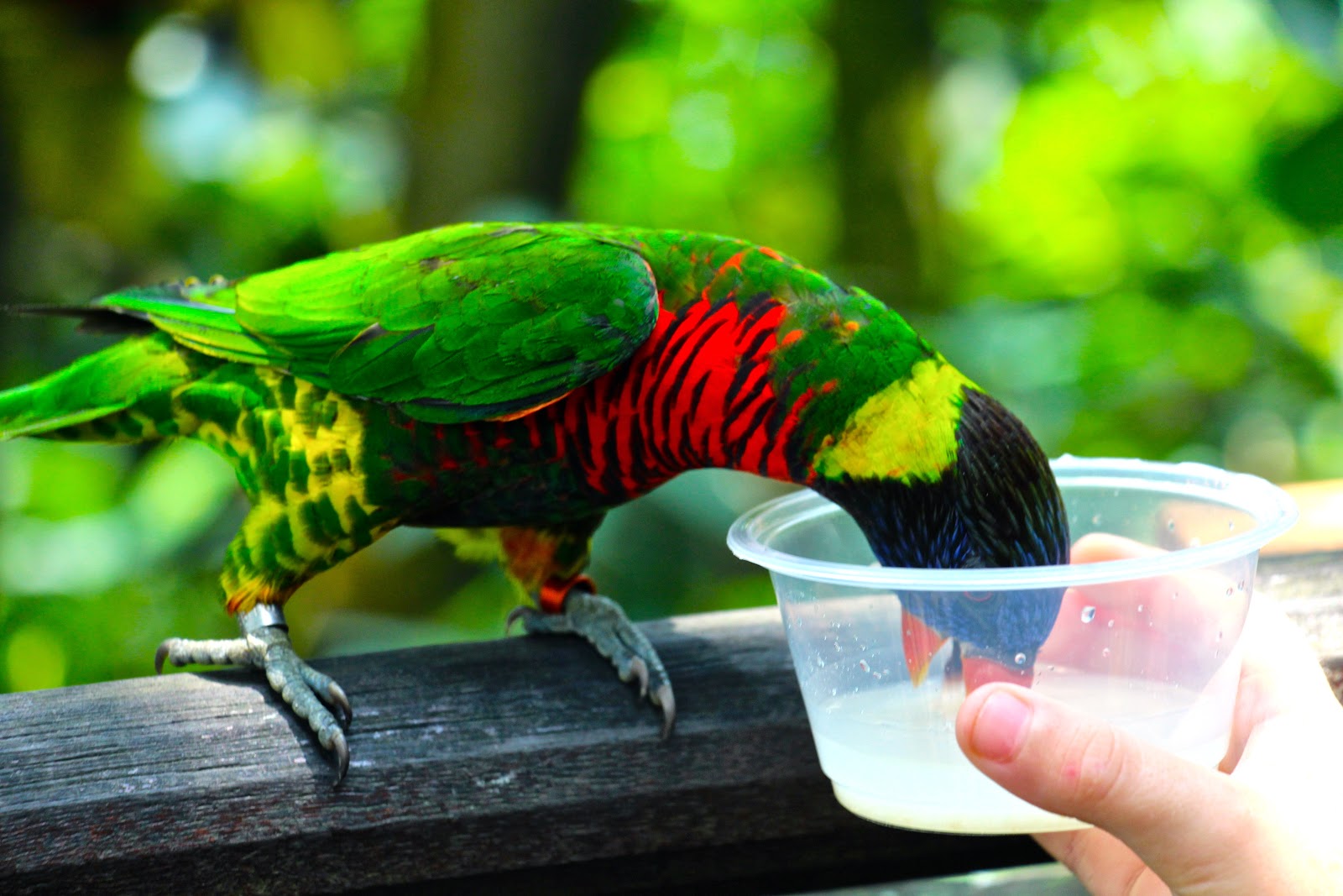 An absolutely beautiful Lorikeet, just look at those colours. But what is he standing on?? What could that be??? |