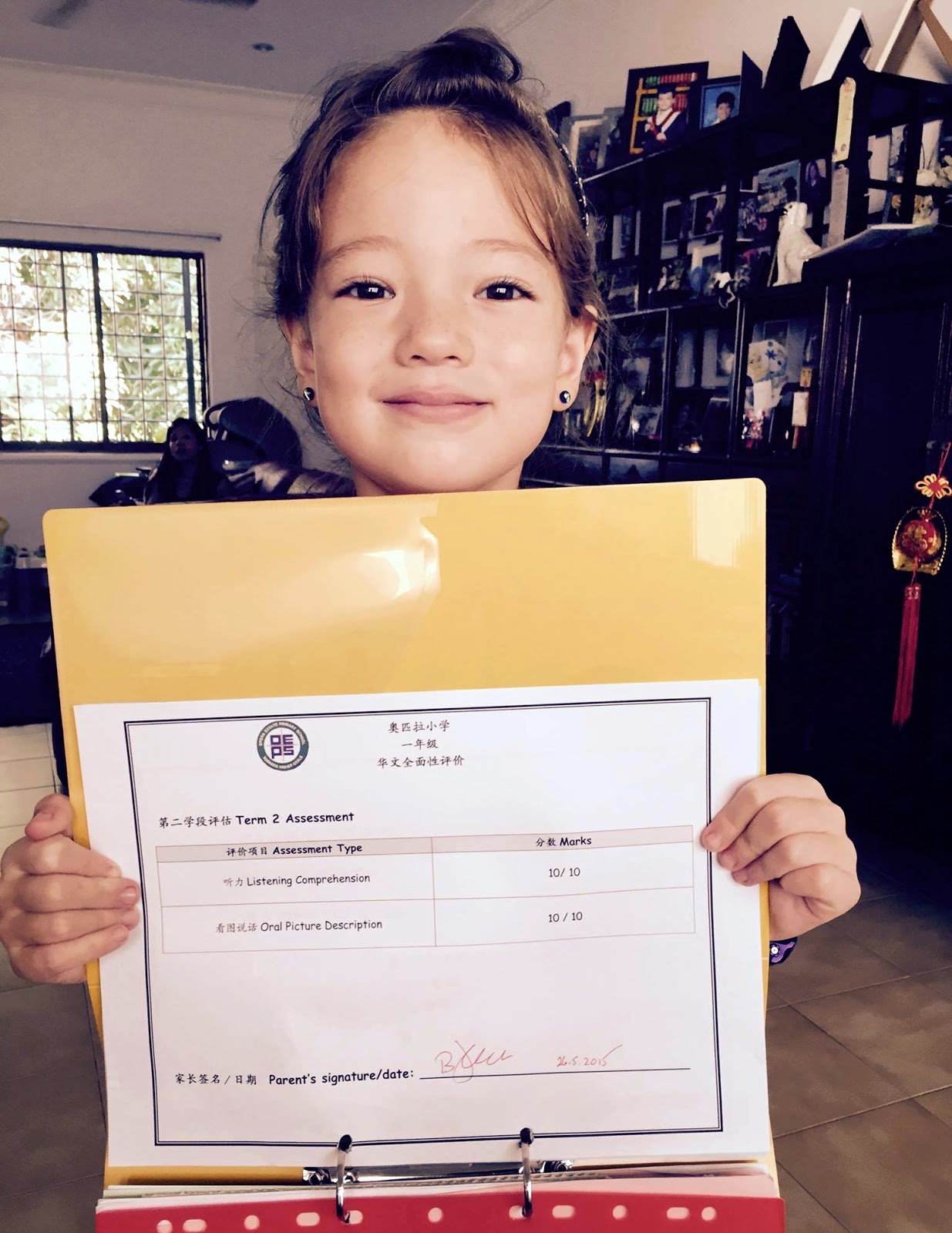 | Next up is Mathematics. This is a SUPER tough subject in local school. Oh dear me – how did she do, scary…. BOOM she got 28/35. AMAZING!!!! |