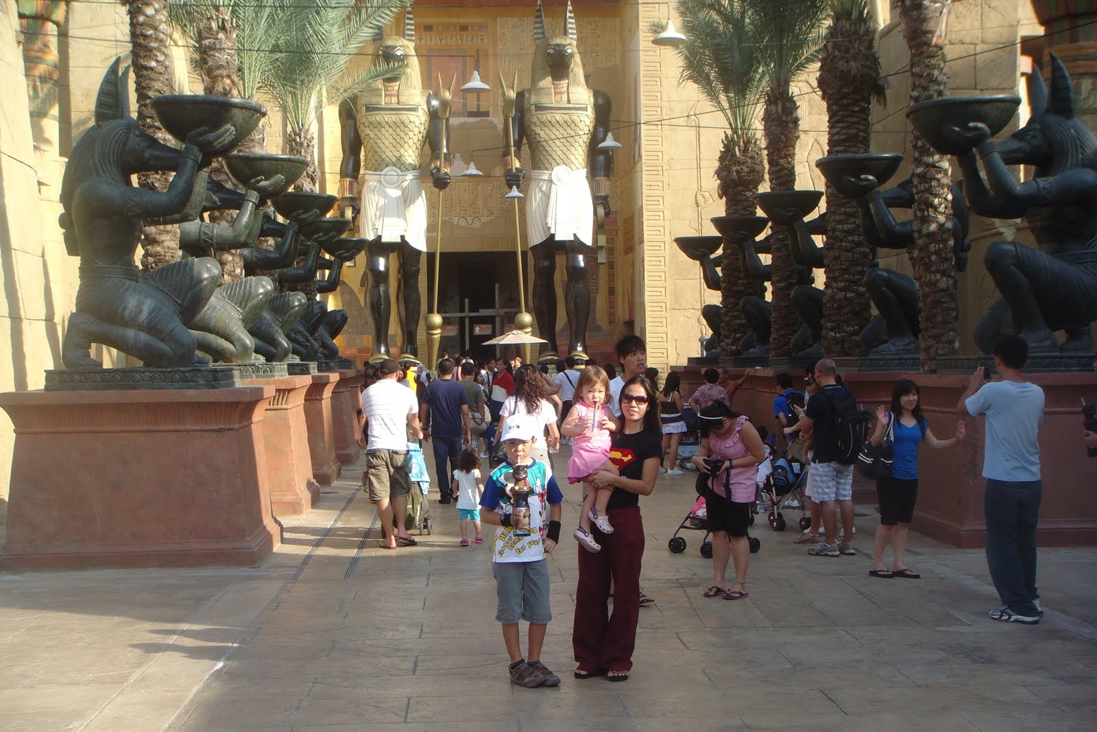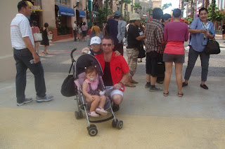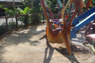 Ollie had a ball as you’d imagine, even riding the rather scary, in the pitch dark, Revenge of the Mummy roller coaster twice (Daddy’s favourite). Amy also had such a great day, she went on a load of rides and watched the 4D films in silence and awe – very cute to watch. We got soaked at the studios ride, she didn’t blink an eye. She got spun in Sci-Fi World, she giggled and jump jump jump afterwards. Well done Amy and well done Ollie as Revenge of the Mummy was super fast and spooky in the dark. You risk taker you! Amy’s favourite and in the photo’s below was Dino-Soar, sort of roundabout that you can make go up and down in the air – we ended up on that 4 times in a row and still crying her little eyes out as we walked away after those 4 goes. She LOVED it.
