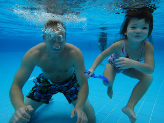No eating in the pool please Uncle Darren.