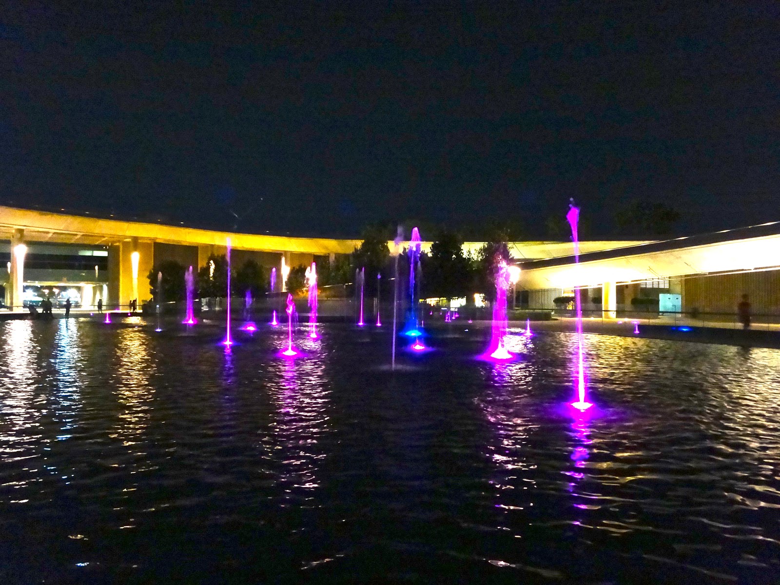 Reaching the barrage the fountains were dancing away. Multi-colours shining out in the dark. A gorgeous neon sight to watch.