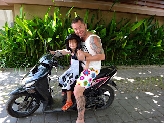 Here is yours truly back to the restaurant at the end of the path – yep kids still sick so only place we could escape to knowing we could get back very quickly! Ah Bali Pirates T-short, sunny day, cool in the shade, cold glass of local in my hand – very very nice.