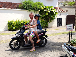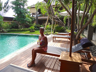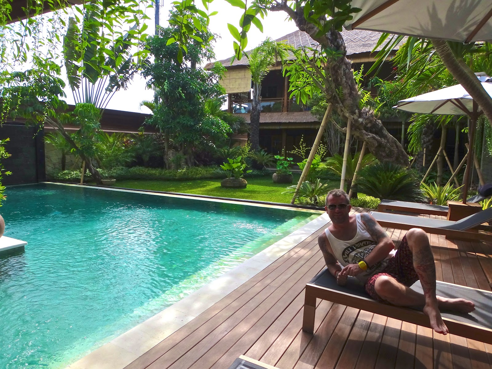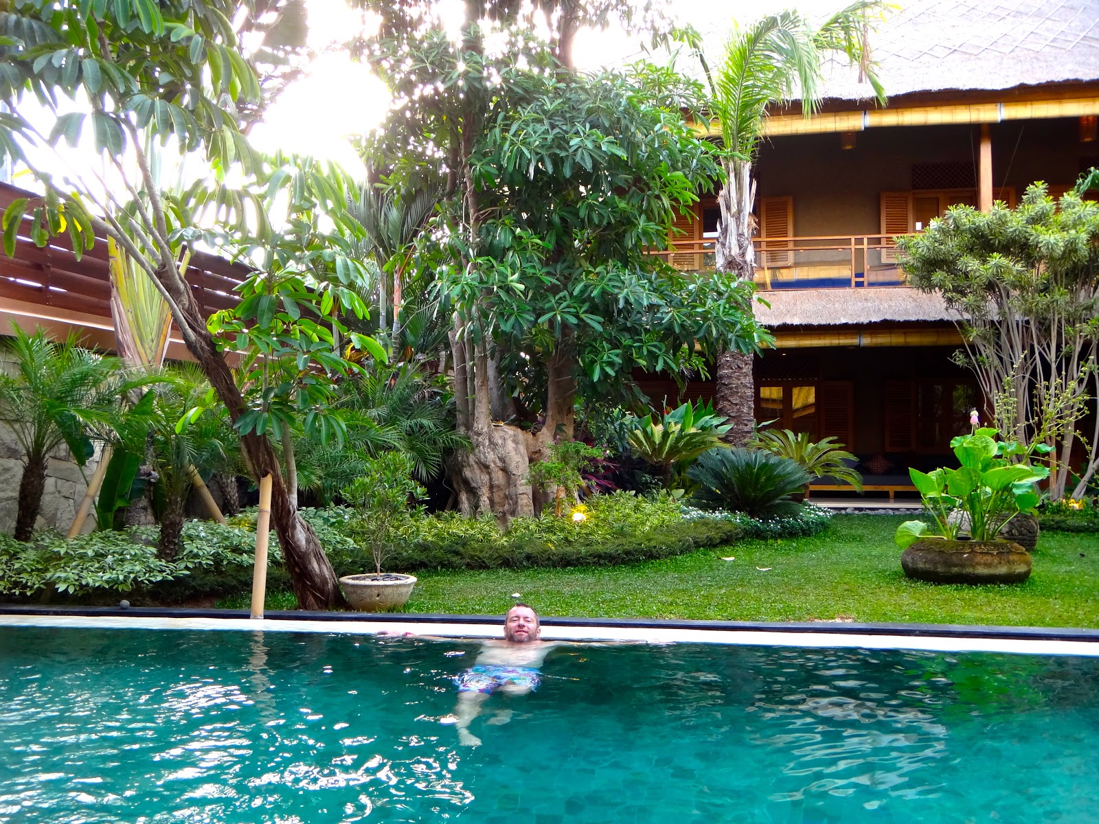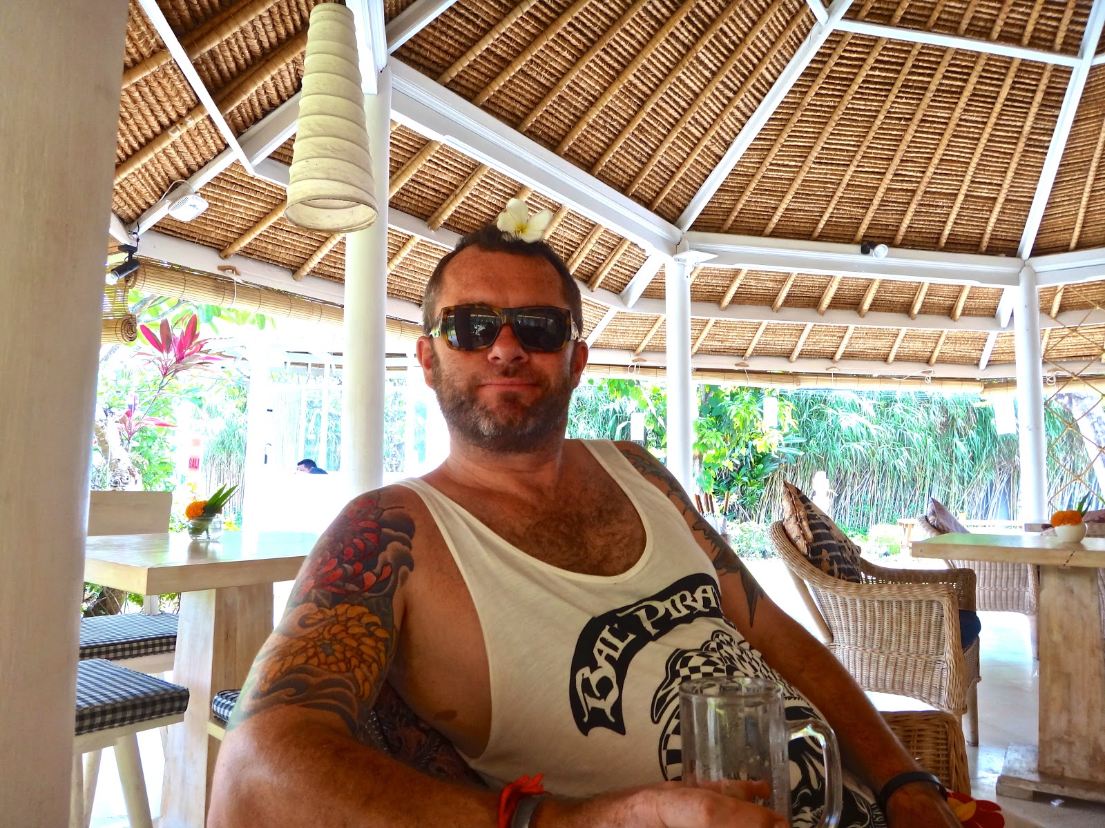 Here is yours truly back to the restaurant at the end of the path – yep kids still sick so only place we could escape to knowing we could get back very quickly! Ah Bali Pirates T-short, sunny day, cool in the shade, cold glass of local in my hand – very very nice.