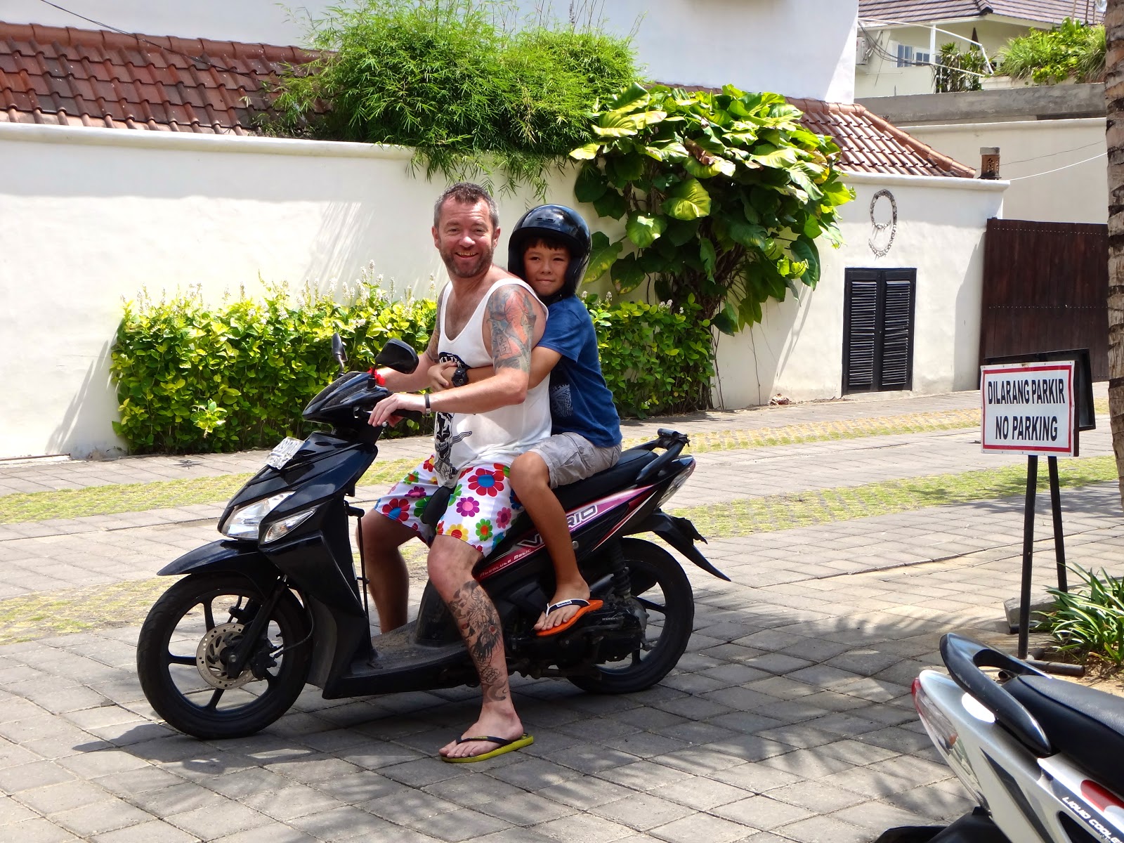Me and the squidlets park in the shade for some posed shots on the bike before squealing off down the road for some giggles.